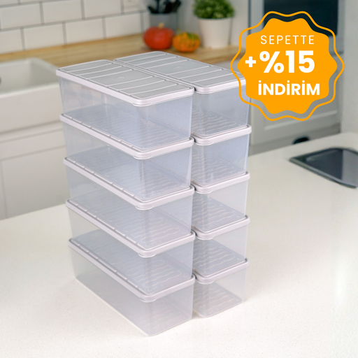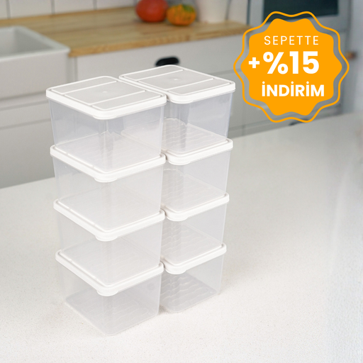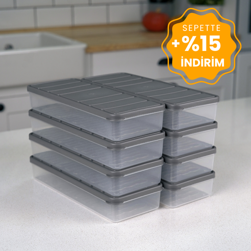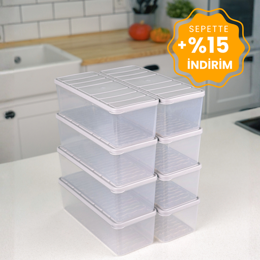 selkahomeKUTU İÇERİĞİ 8 adet 1,2 lt 11x28x5 cm küçük boy saklama kabı ÜRÜN ÖZELLİKLERİ Malzeme : Dayanıklı ve gıda sınıfı plastik (B...