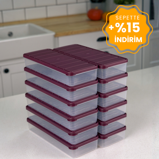selkahomeKUTU İÇERİĞİ 12 adet 1,2 lt 11x28x5 cm küçük boy saklama kabı ÜRÜN ÖZELLİKLERİ Malzeme : Dayanıklı ve gıda sınıfı plastik (...
