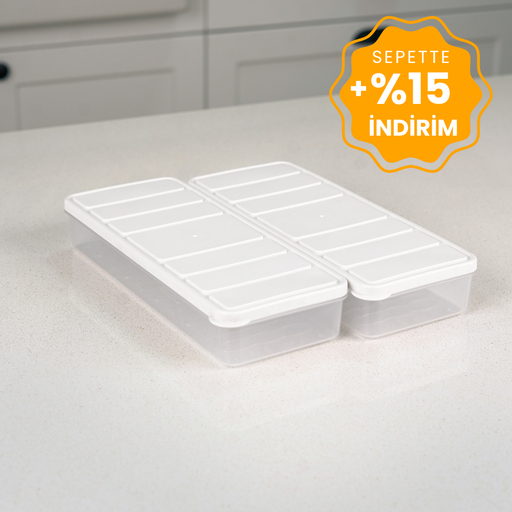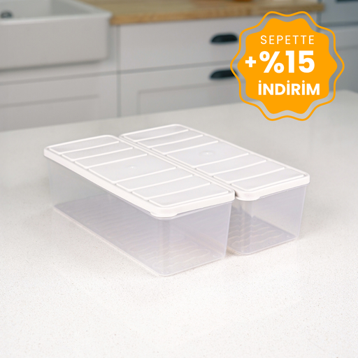 selkahomeKUTU İÇERİĞİ 1 adet 2,5 lt 23x28x5 cm büyük boy saklama kabı 2 adet 1,2 lt 11x28x5 cm küçük boy saklama kabı ÜRÜN ÖZELLİKLERİ Mal...