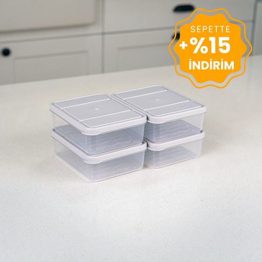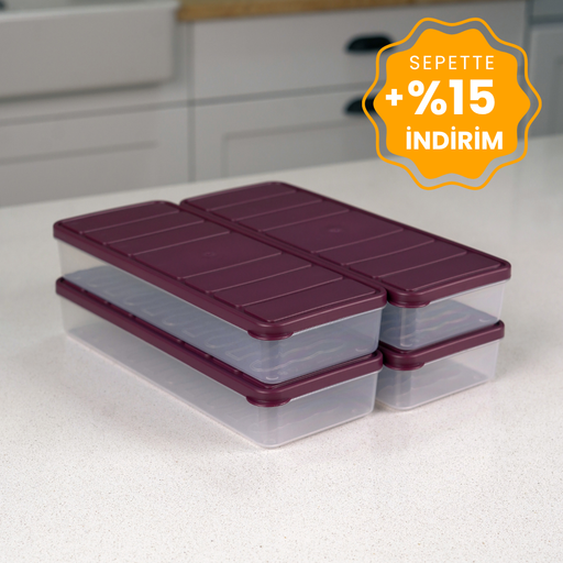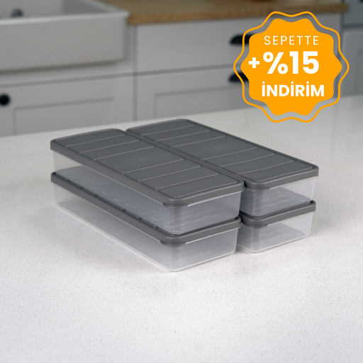 selkahomeKUTU İÇERİĞİ 4 adet 1,2 lt 11x28x5 cm küçük boy saklama kabı ÜRÜN ÖZELLİKLERİ Malzeme: Dayanıklı ve gıda sınıfı plas...