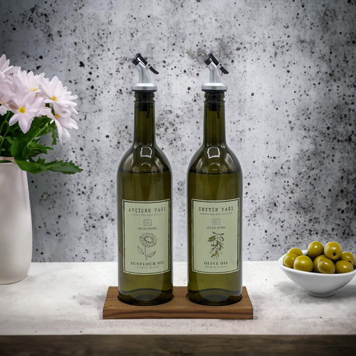 Selka Home Ahşap Stant 2'li Olıve Oıl ve Sunflour Oıl 750 ml